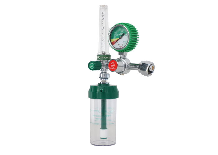 Piston type oxygen regulator is a decompression device for cylinder oxygen, which ensures that the export pressure remains stable when the import pressure and the outlet flow change. Mainly used in clinical and home oxygen-absorbing therapy.